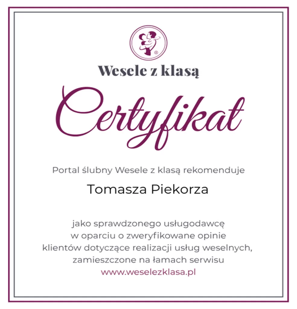 - Zostałem wyróżniony jako najlepszy profesjonalista w kategorii fotograf śląsk od portalu ZANK YOU WEDDINGS